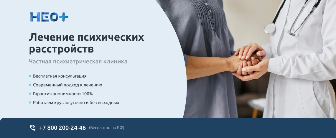 Записаться на прием к врачу-психиатру можно на официальном сайте клиники «НеоПлюс» в Киреевске или по телефону ☎️ +7 (800) 200-24-46. Звоните нам, не запускайте проблему. Мы знаем, как вернуть здоровье и покой в Вашу семью!